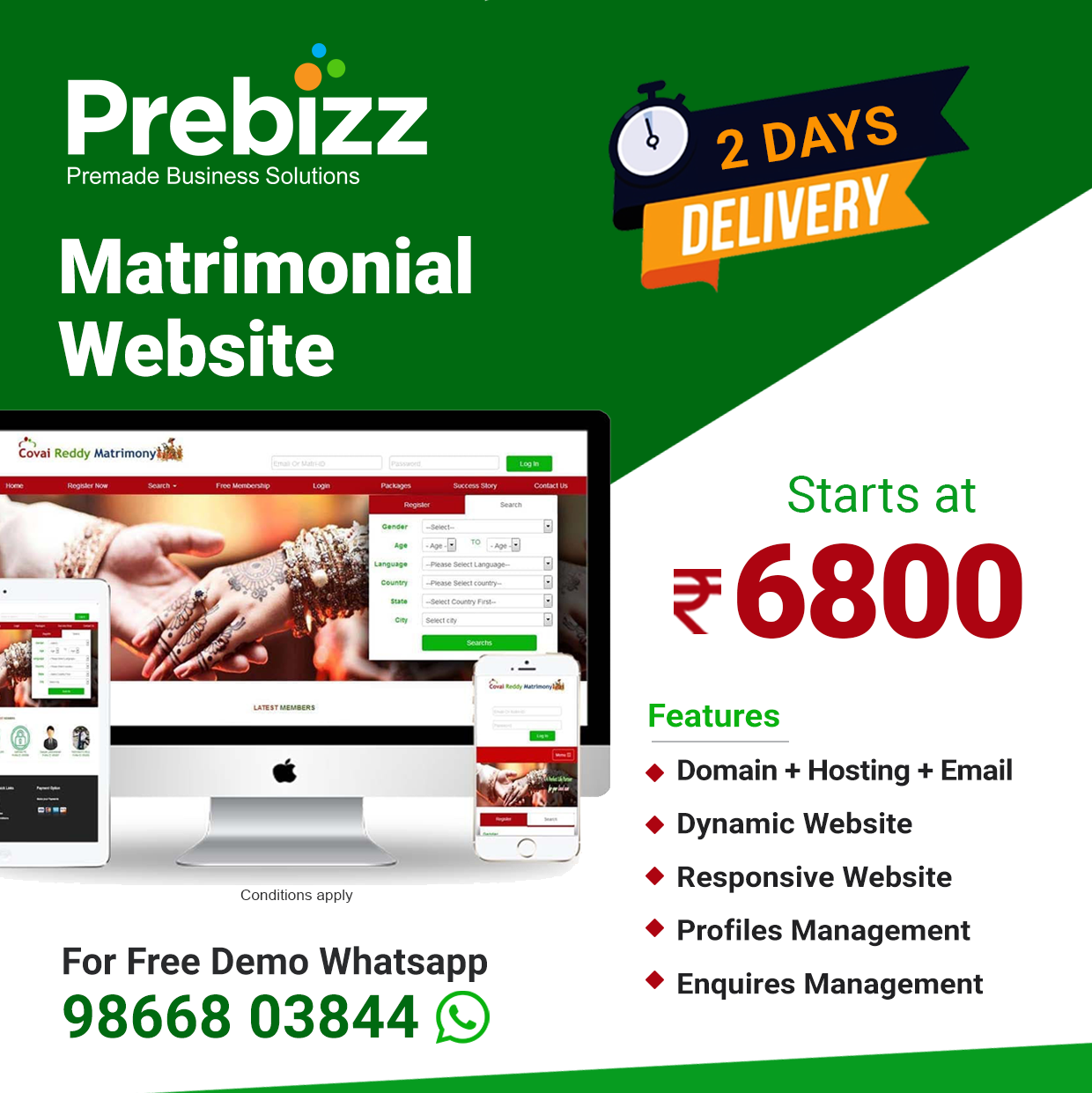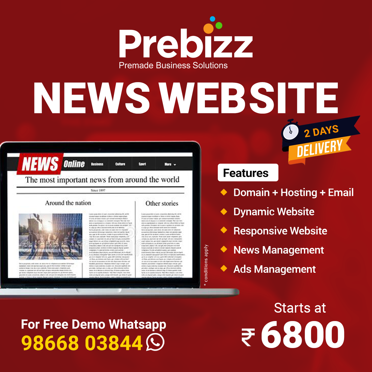 Prebizz offers Pre-Made Business Solutions (“Products”) with no customizations. All products are delivered as-is.